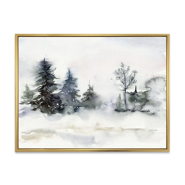 Christmas Minimalistic Forest Landscape and Snow Canvas Wall Art