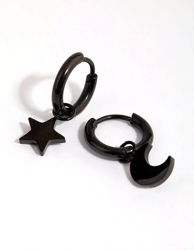 Matte Black Surgical Steel Celestial Huggie Earrings