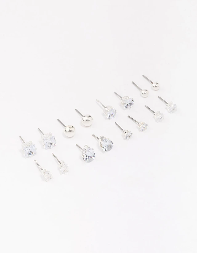 Gold Blue Clear & Pink Diamante Mixed Shape Stud Earrings 8-Pack