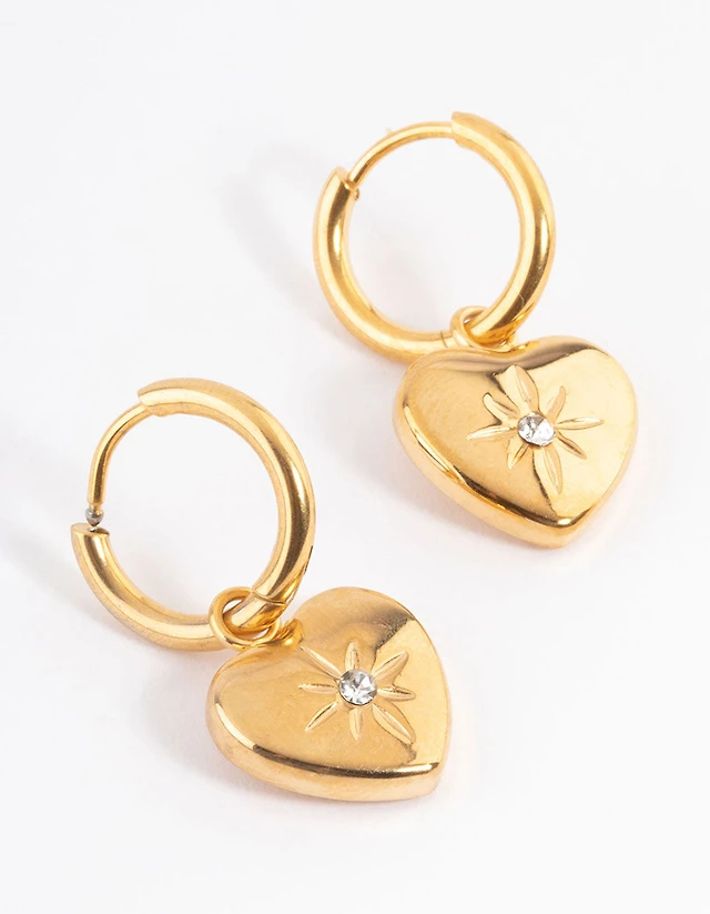 Gold Plated Surgical Steel Chunky Heart Huggie Hoop Earrings