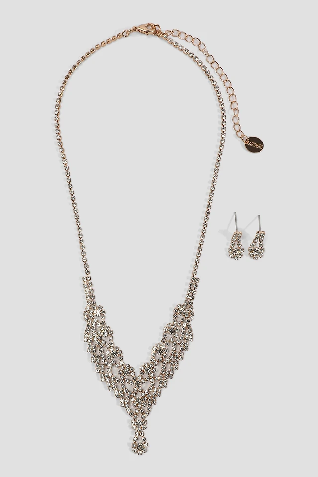 Ardene Rhinestone V Shape Necklace & Earrings Set in Gold | Stainless Steel