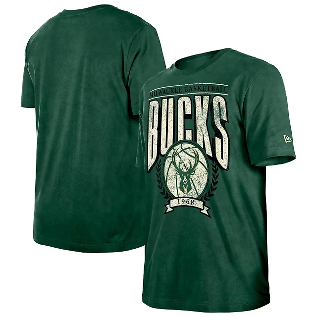Men's New Era Hunter Green Milwaukee Bucks Throwback Vintage Boxy Mineral Wash T-Shirt