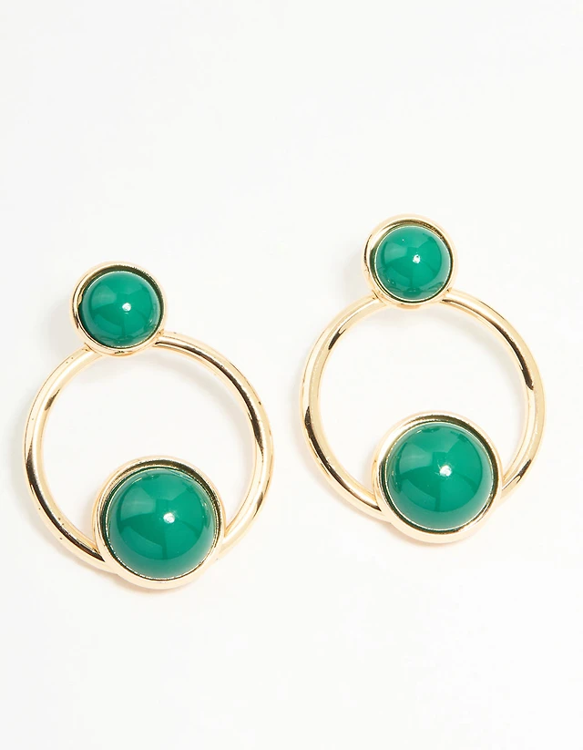 Gold Plated Horizontal Baguette Emerald Oval Hoop Earrings