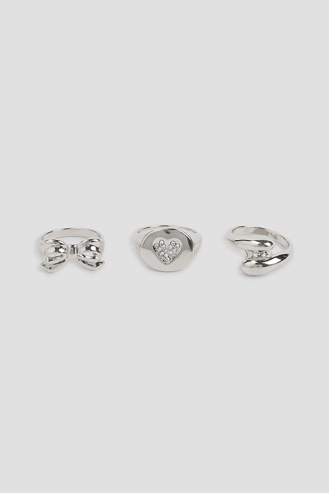 Ardene 3-Pack Bow & Heart Rings in Silver | Size