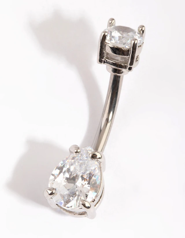 Titanium Pear Diamante Belly Bar