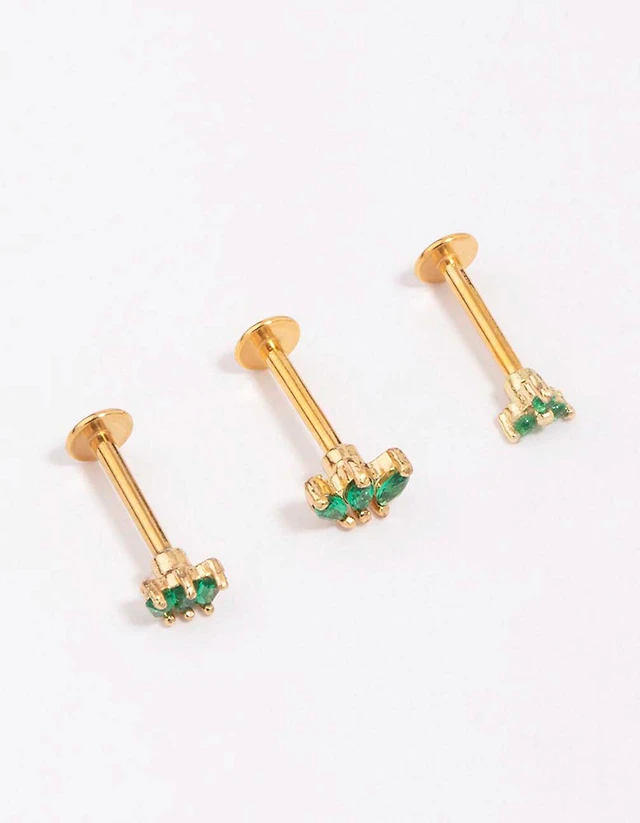 Gold Plated Surgical Steel Marquise Fan Flat Back 3-Pack