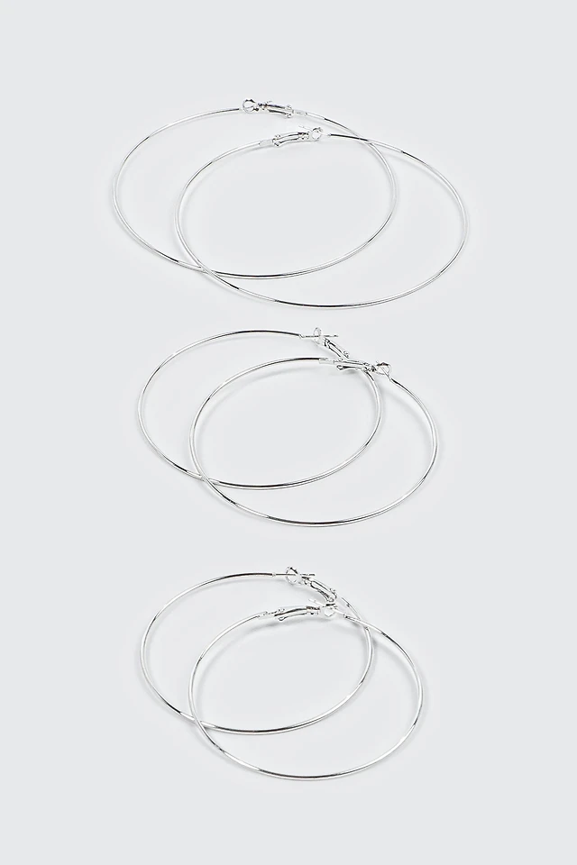 Ardene 3-pack 14K White Gold Plated Hoop Earrings in Silver