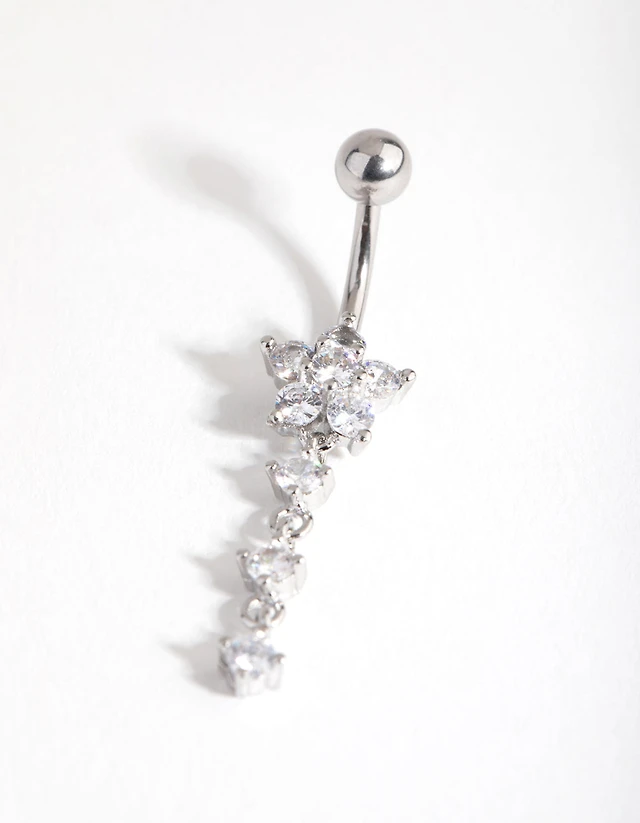 Gold Surgical Steel Statement Flower Drop Belly Bar