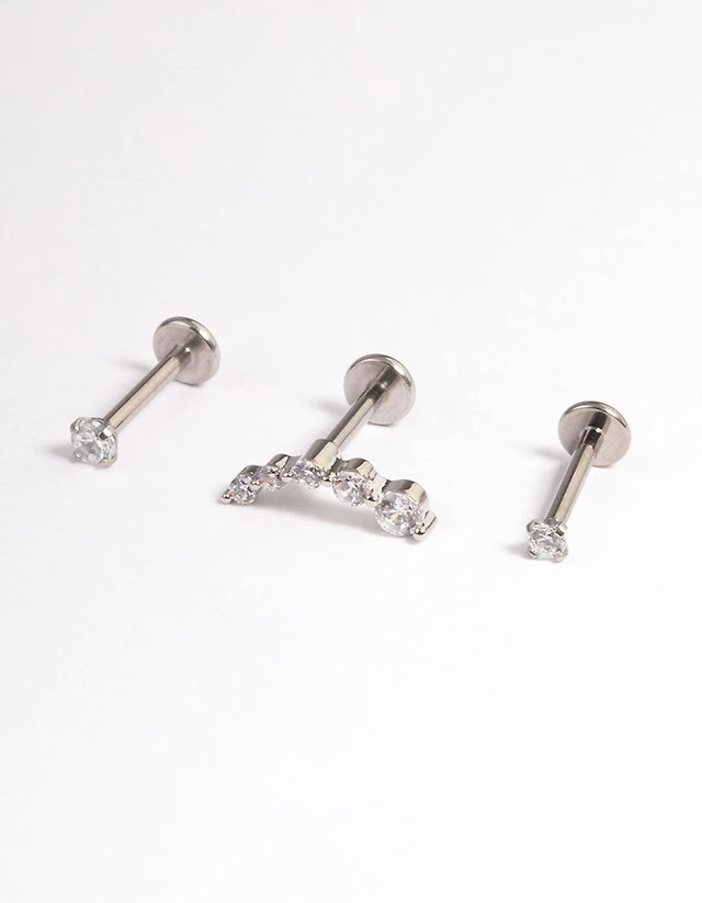 Waterproof Stainless Steel Graduating Cubic Zirconia Earring 3-Pack