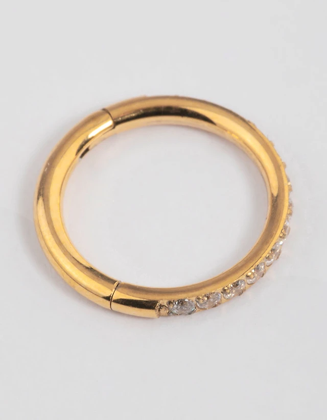 Gold Plated Surgical Steel Fine Pave Band Clicker Ring