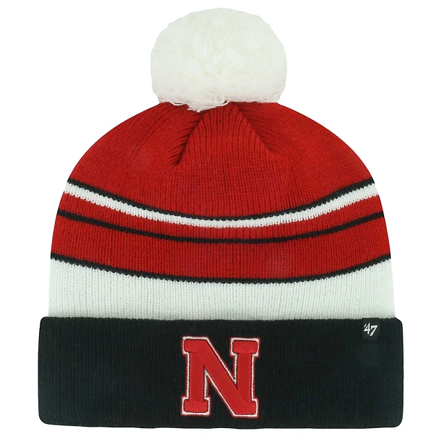 Men's '47 Scarlet Nebraska Huskers Bering Cuffed Knit Hat with Pom