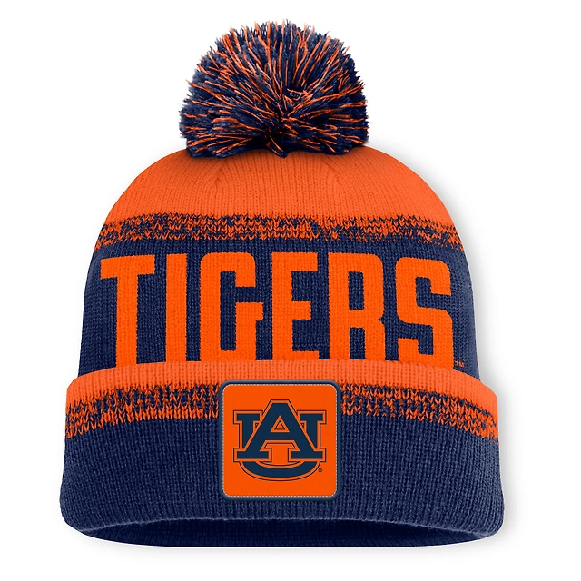 Men's '47 Charcoal Auburn Tigers Stack Striped Cuffed Knit Hat with Pom