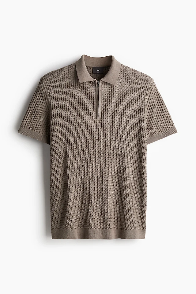 Slim-Fit Cable-Knit Polo Shirt