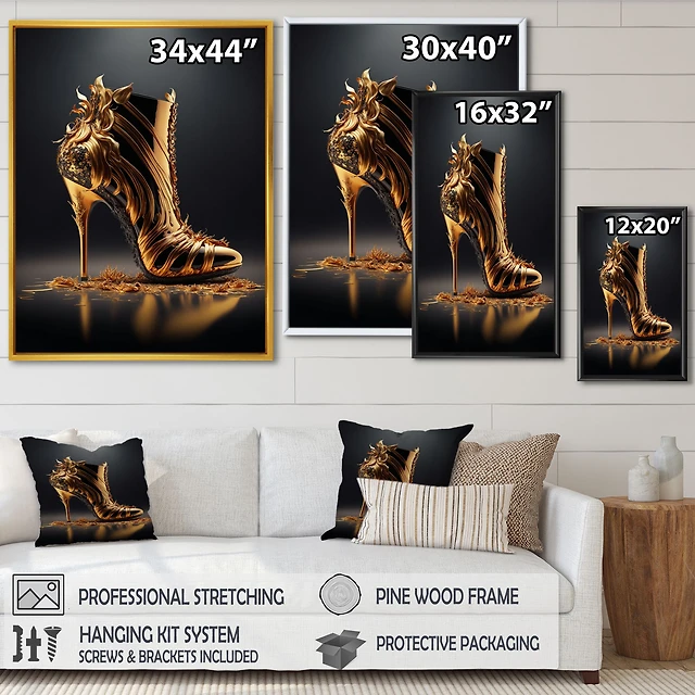 Gold Floral High Heel Shoes Wall Art