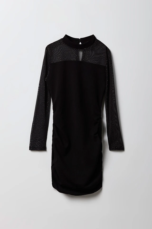 Girls Sparkle Mesh Ruched Dress