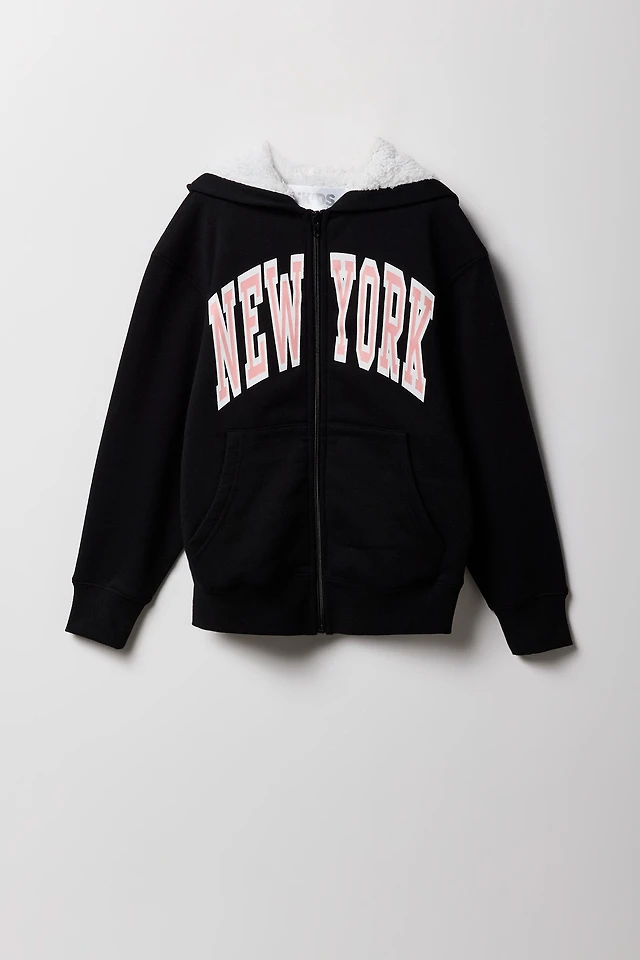 Sherpa Lined Zip-Up Fleece Hoodie