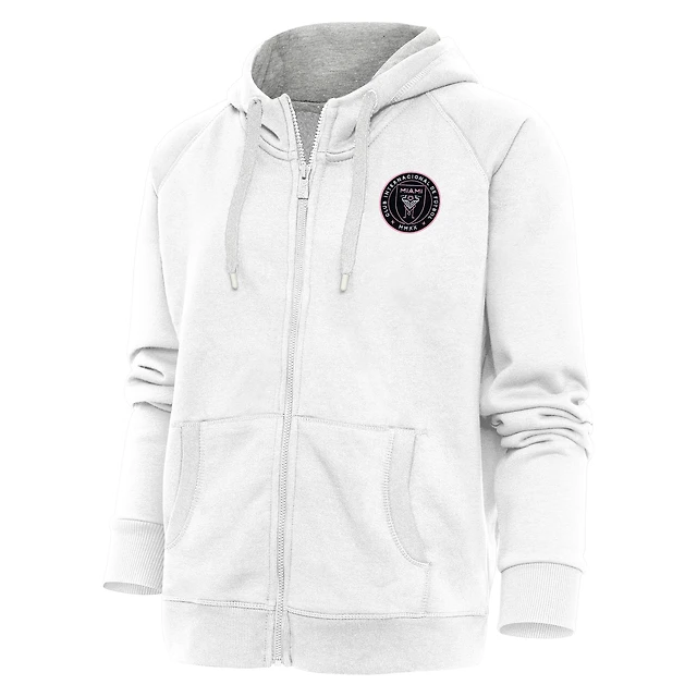 Women's Antigua White Inter Miami CF Logo Victory Full-Zip Hoodie