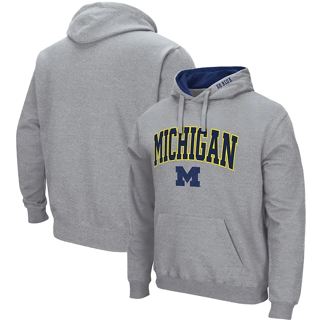 Men's Colosseum Heather Gray Michigan Wolverines Arch & Logo 3.0 Pullover Hoodie