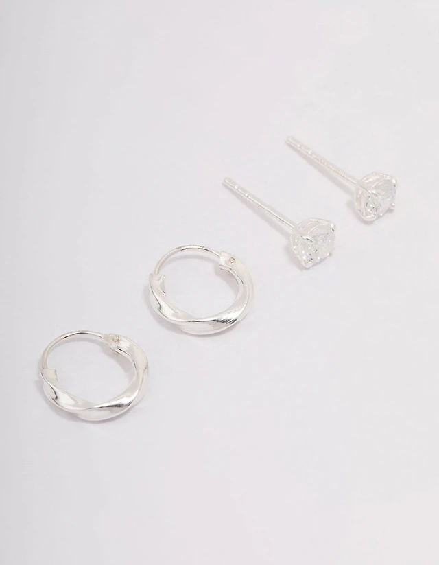 Silver Twisted & Smooth Hoop Earrings 2-Pack