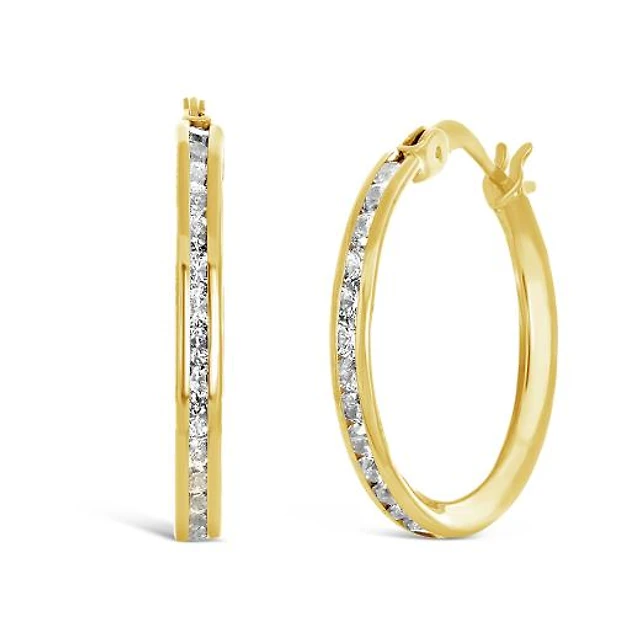 10K Yellow Gold 15mm Cubic Zirconia Hoop Earrings