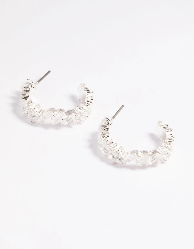 Silver Cubic Zirconia Baguette Hoop Earrings