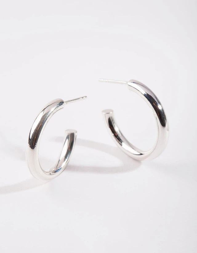 Silver Cubic Zirconia Baguette Hoop Earrings