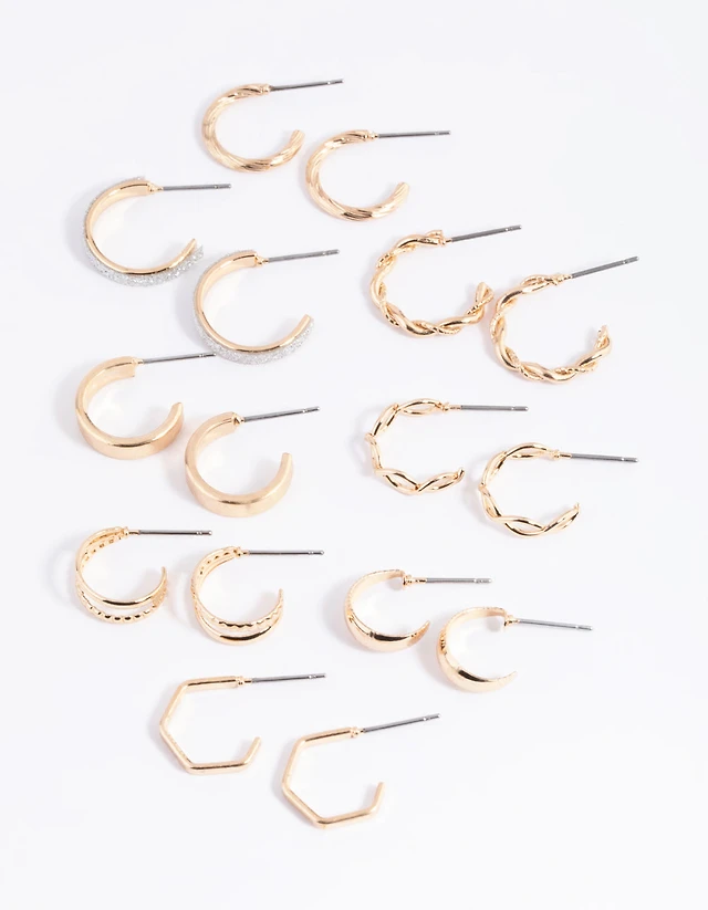 Gold Textured & Smooth Hoop Earrings 6-Pack