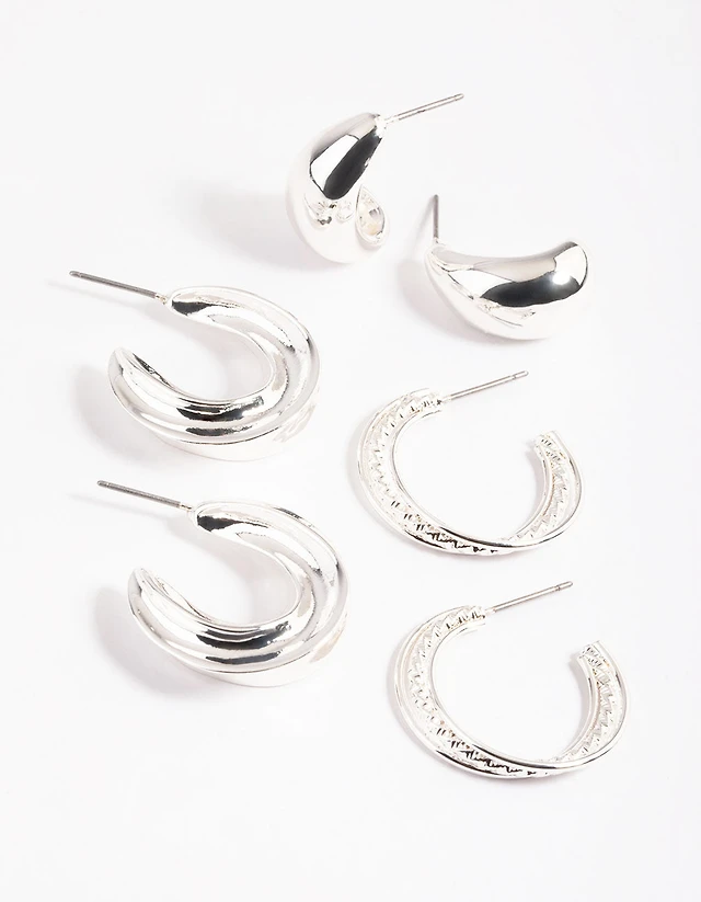Silver Diamante & Bow Heart Earrings 7-Pack