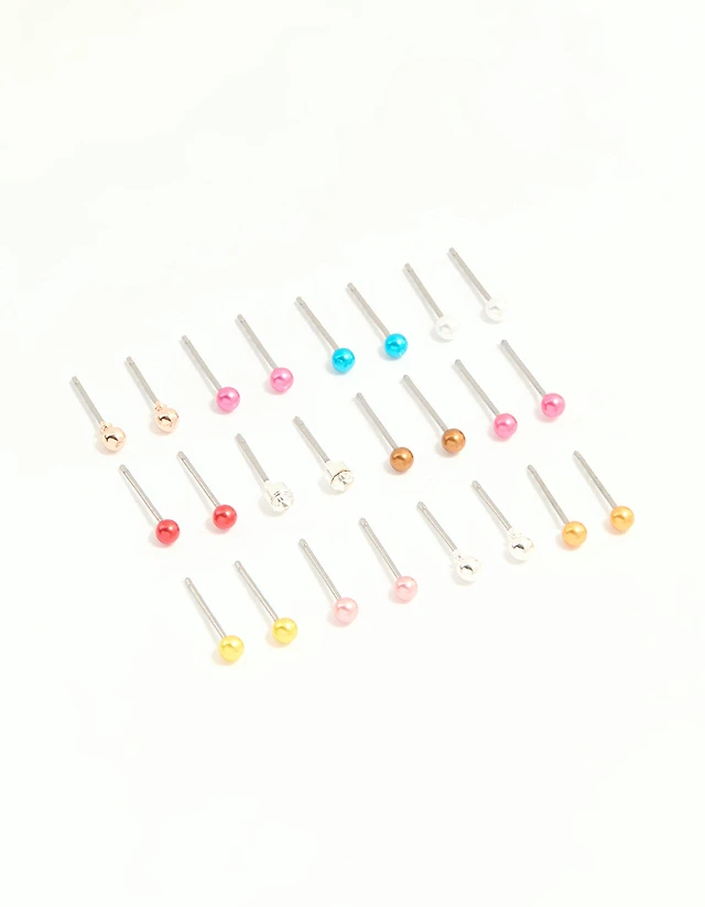 Silver Charm & Pearl Stud Earrings 6-Pack