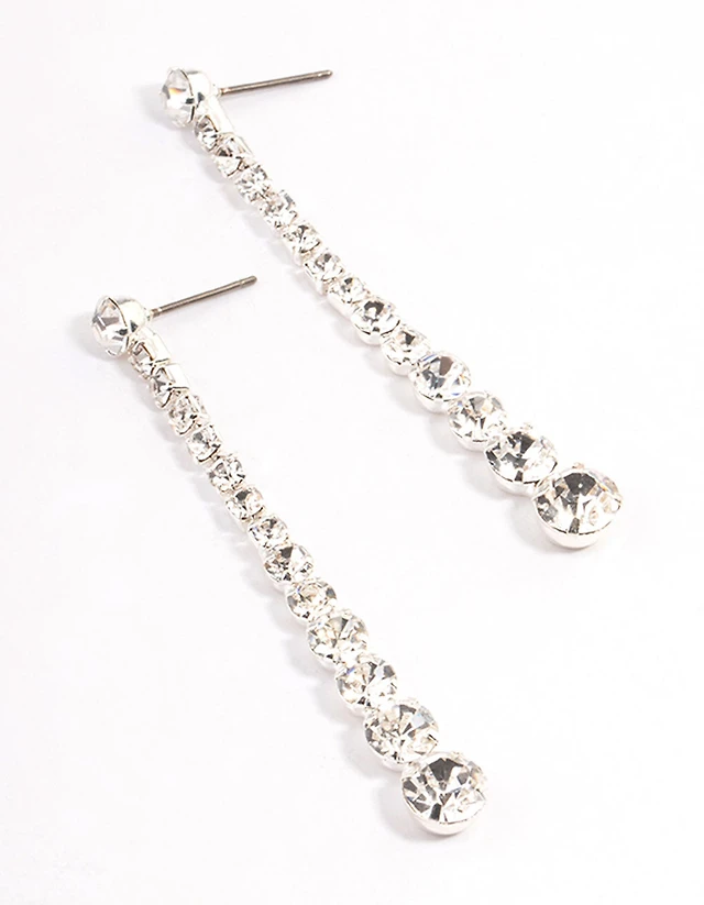 Silver Diamante Graduated Straight Drop Earrings