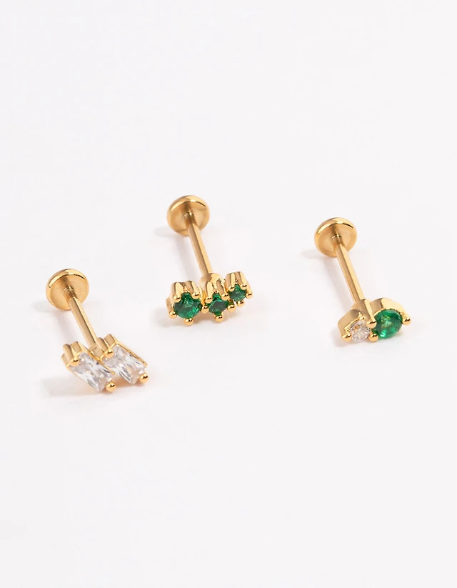 Gold Plated Surgical Steel Round Crawler Flat Back Studs 3-Pack