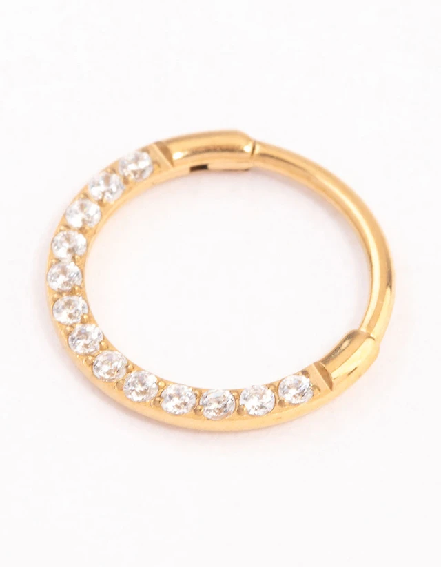 Gold Plated Titanium Cubic Zirconia Clicker Ring 8mm