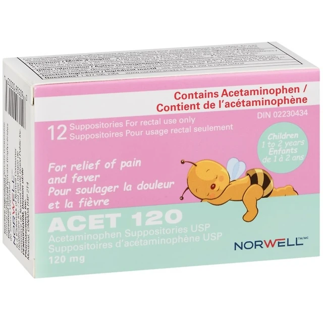 ACET Suppository for Fever & Pain 120mg - Fever Reducer Suppositories for Children (1-2 Years) - Comfortable & Safe Acetaminophen Suppository - For Rectal Use Only