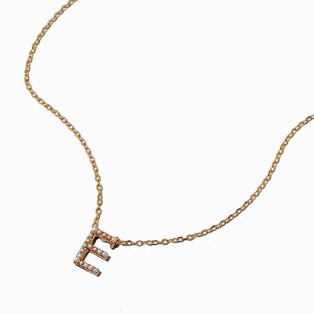 Gold-tone Mini Pearl Initial Chain Necklace - E