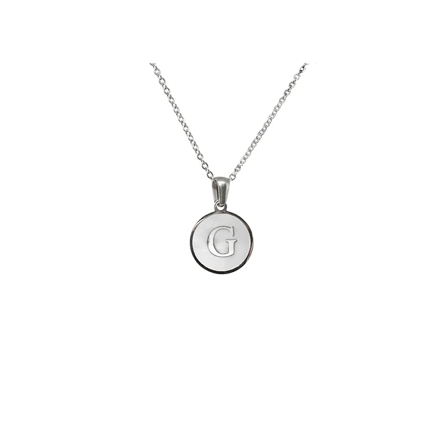 Luenzo Stainless Steel Initial Necklace "G" with Mother of Pearl Inlay