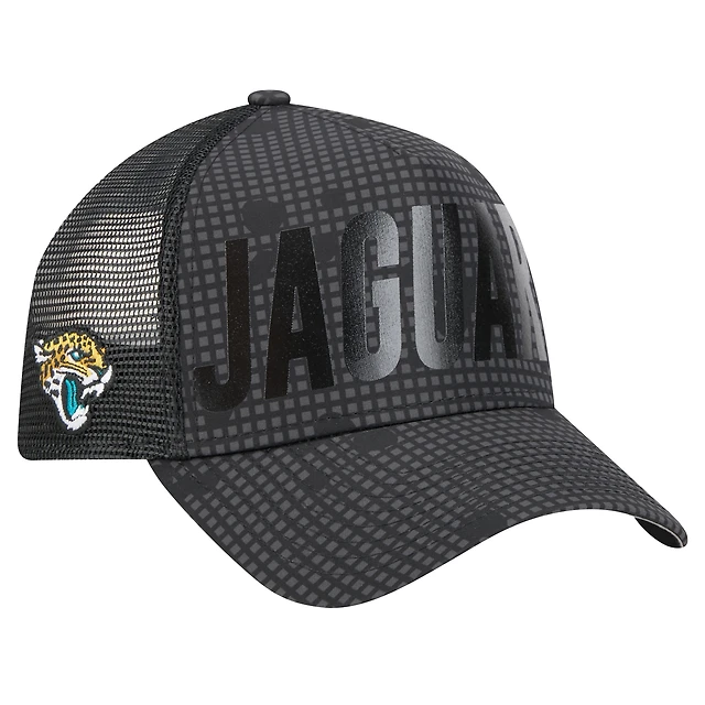 Men's New Era Black Jacksonville Jaguars Midnight Ink Tonal Text A-Frame Trucker 9FORTY Adjustable Hat