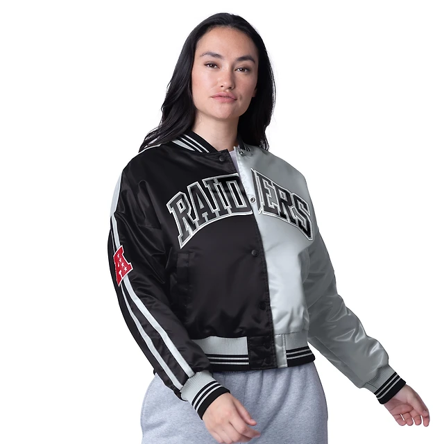 Women's Starter Black/White Brooklyn Nets Split Colorblock Satin Full-Snap Varsity Jacket