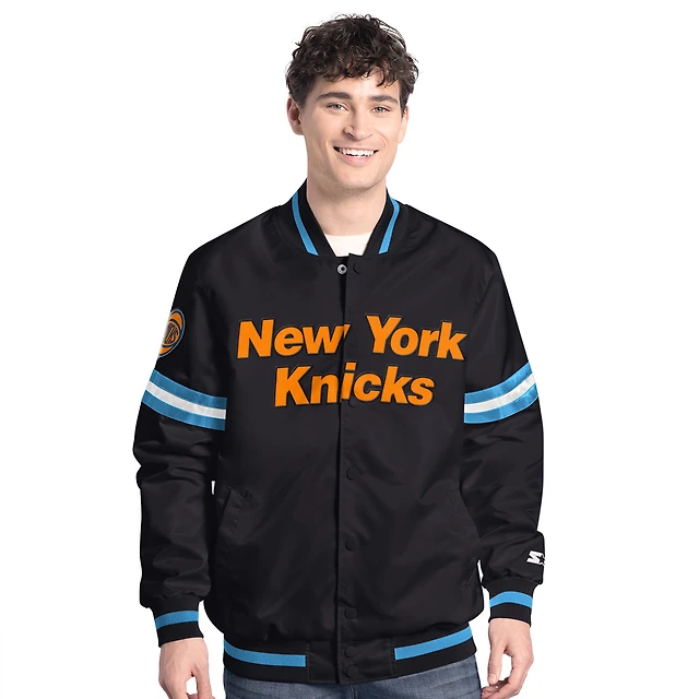 Men's Starter Blue/Orange New York Knicks The Ambassador Satin Varsity Jacket
