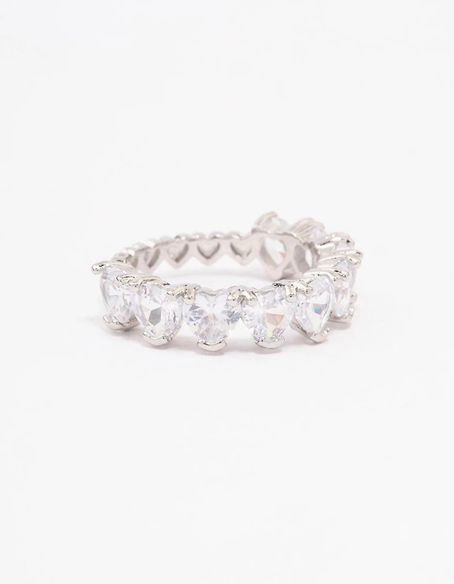 4.0mm Heart-Shaped Lab-Created White Sapphire Eternity Band Sterling Silver