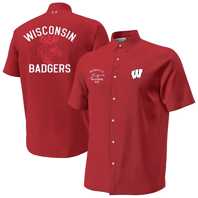 Men's Under Armour Red Utah Utes Gameday Armourfuse Camp Button-Up Shirt