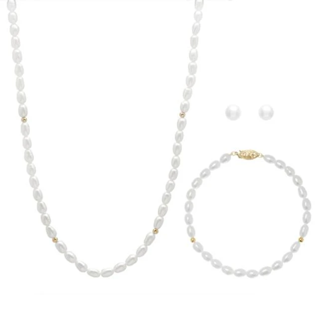 Rose Gold Layered Pearl Station Necklace