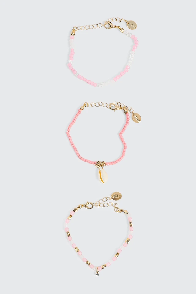 Ardene 3-Pack Bead Bracelets in Light Pink