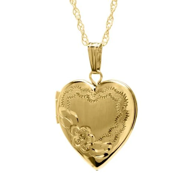 14K Yellow Gold Filled 18" Engraved Heart Locket