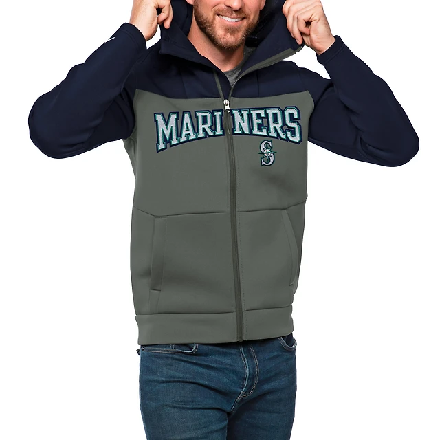 Men's Antigua Steel/Black Austin FC Brushed Metallic Logo Protect Full-Zip Hoodie