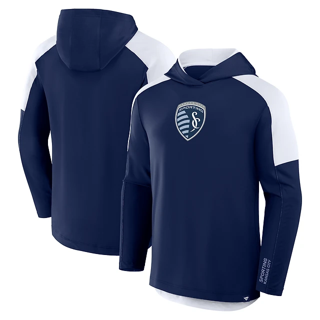 Women's Antigua Navy Sporting Kansas City Brushed Metallic Victory Pullover Hoodie