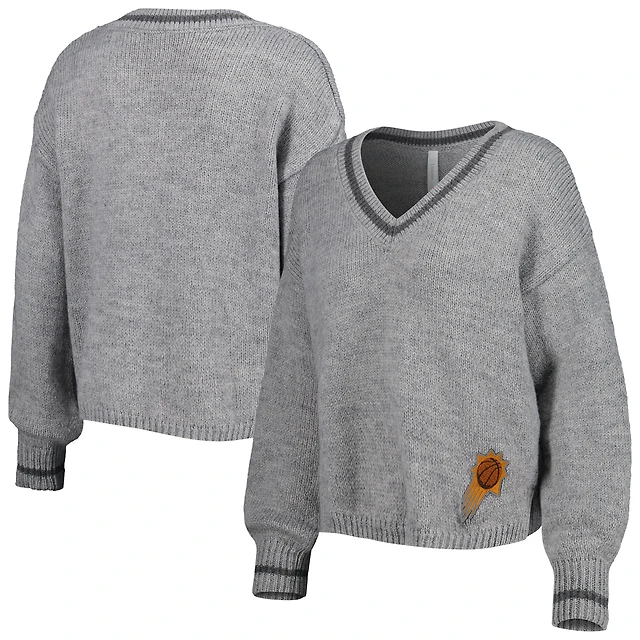 Women's Lusso Gray Philadelphia 76ers Scarletts Lantern Sleeve Tri-Blend V-Neck Pullover Sweater