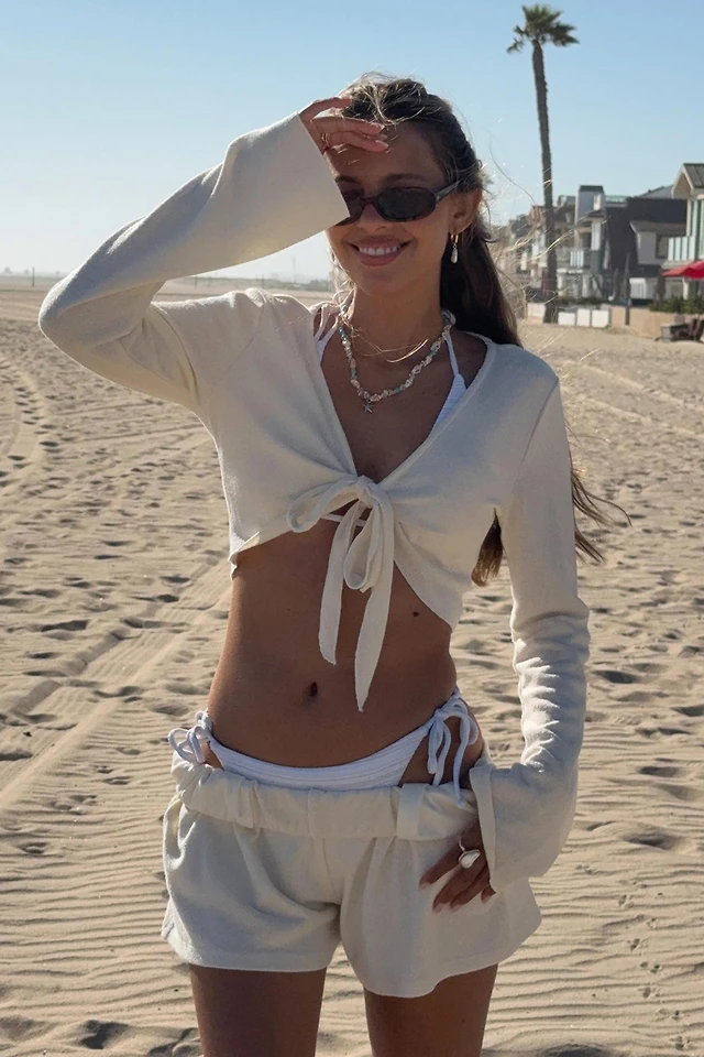 Ardene Raglan Sweater with Bow Detail in White | Size | Polyester/Spandex
