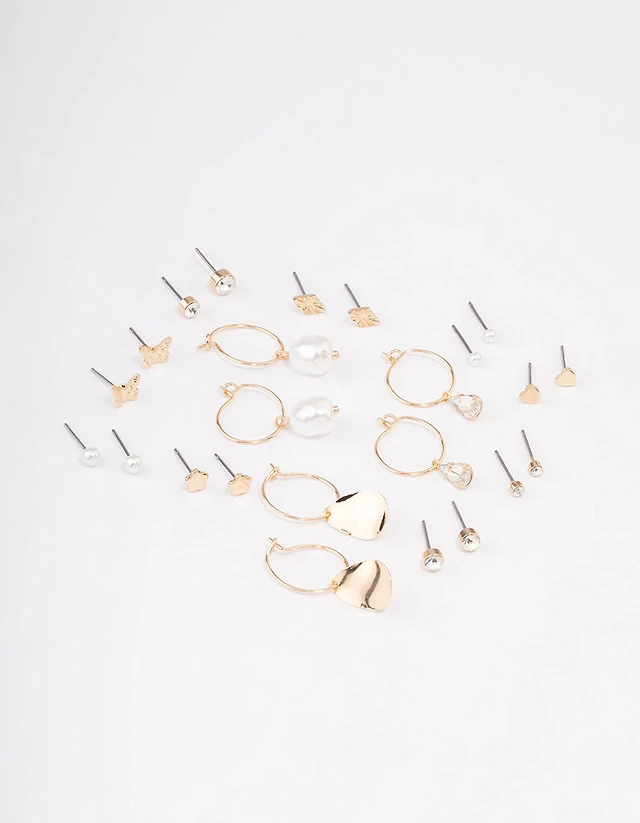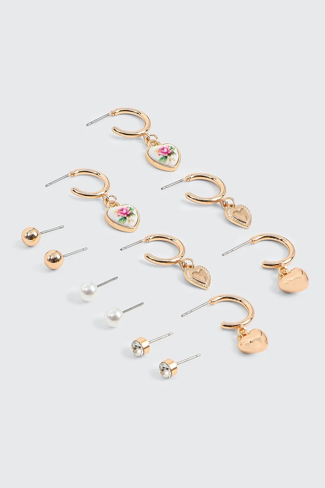 Ardene 6-Pack Heart Charm Earrings in Gold | Stainless Steel