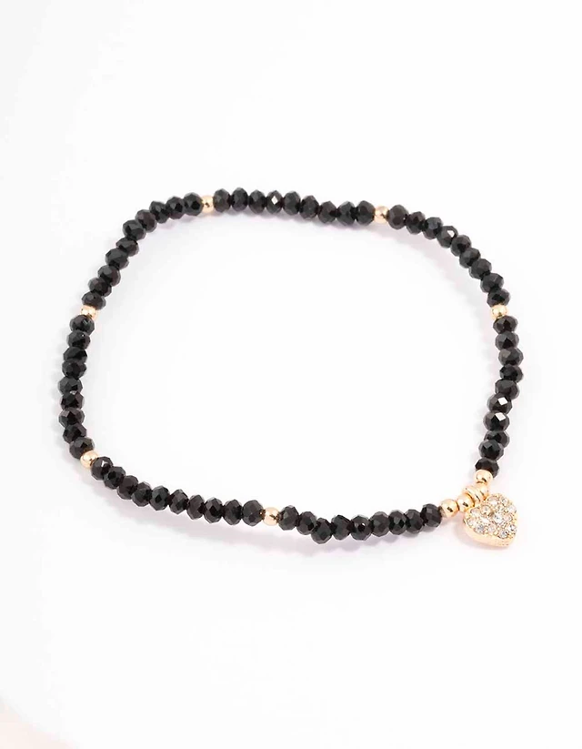 Black Beaded Simple Toggle Heart Charm Bracelet