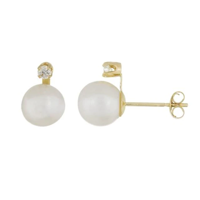 14K Yellow Gold 7-7.5mm Freshwater Pearl Stud Earrings with 0.10CTW Diamonds